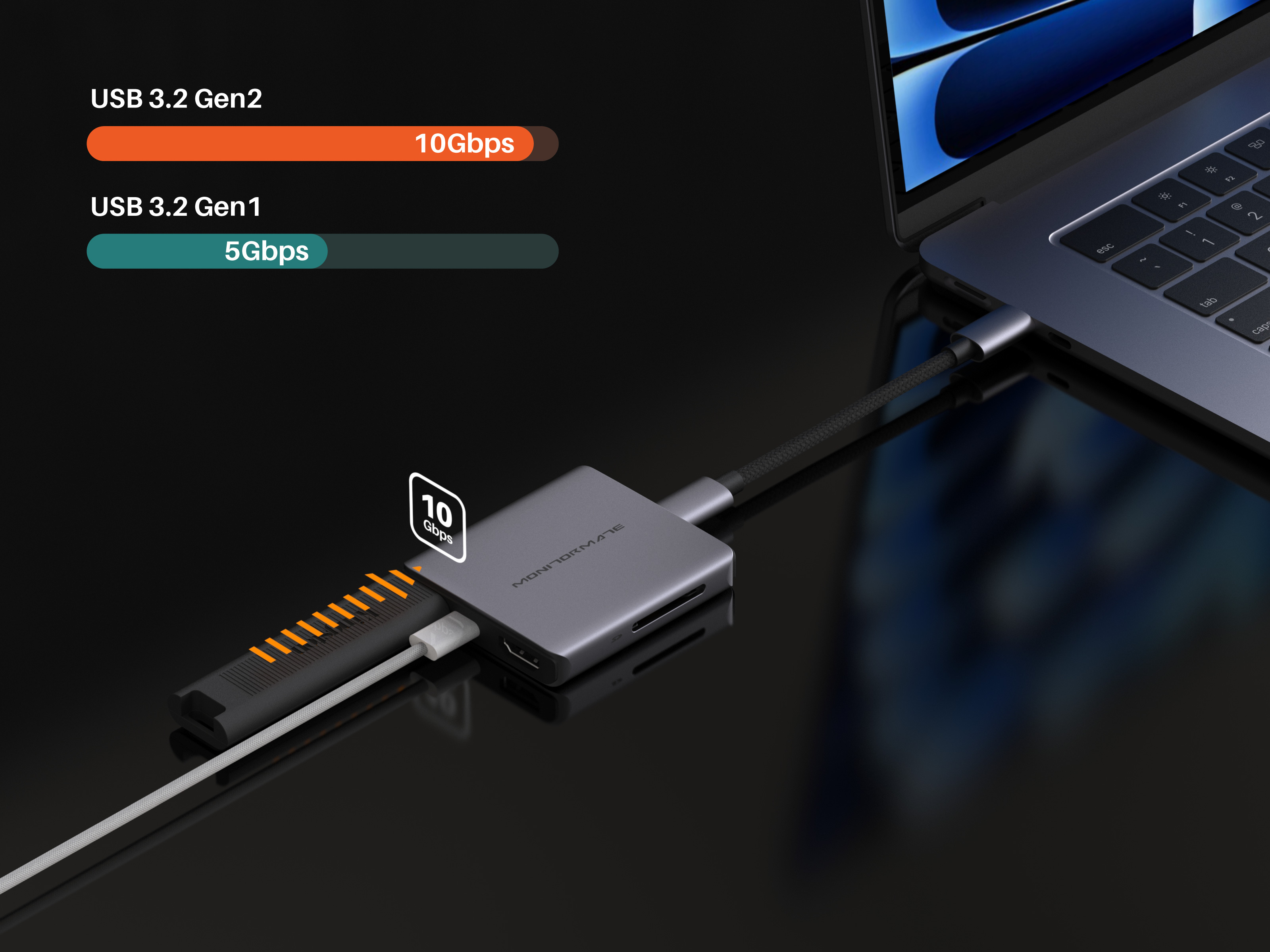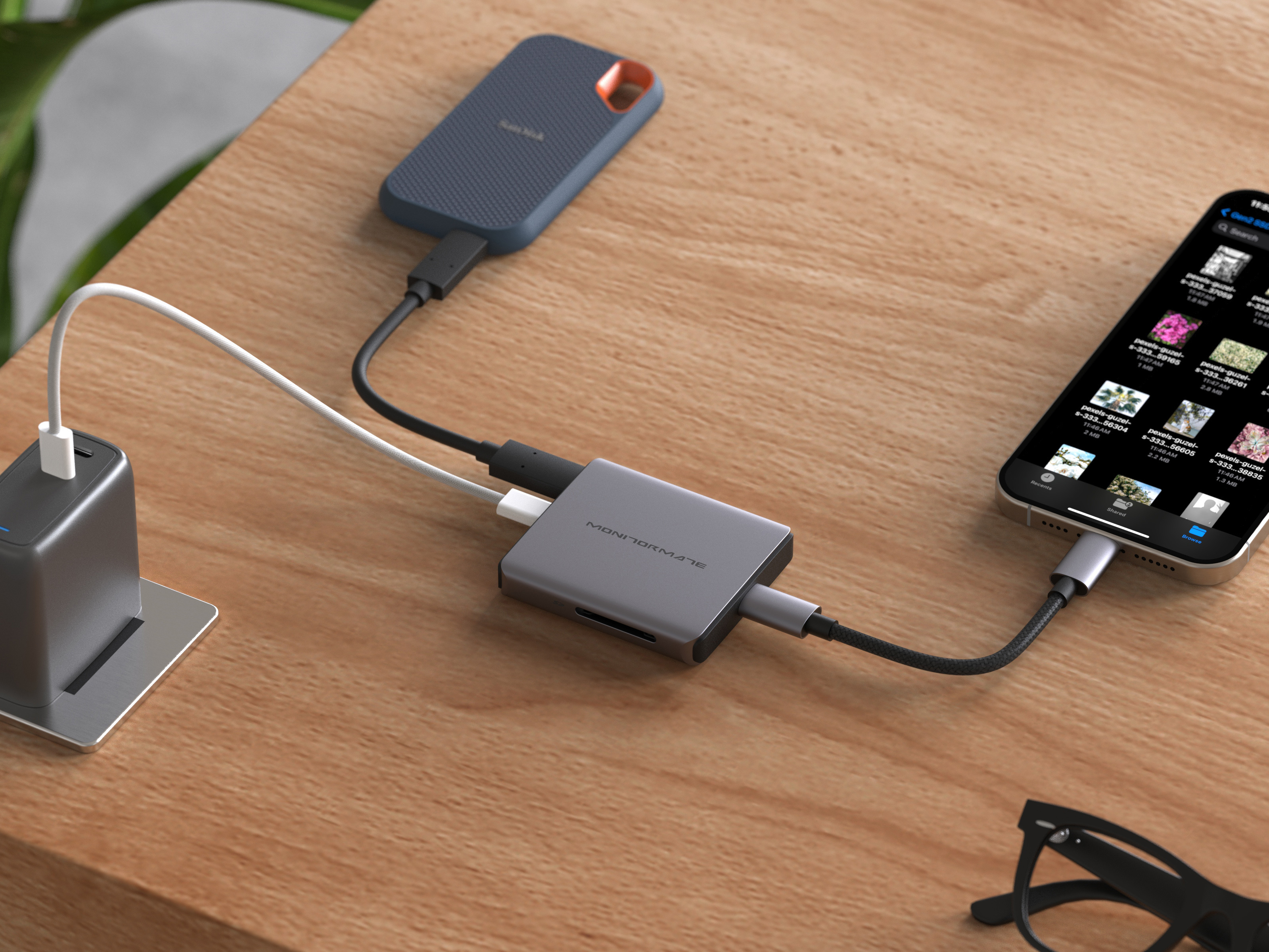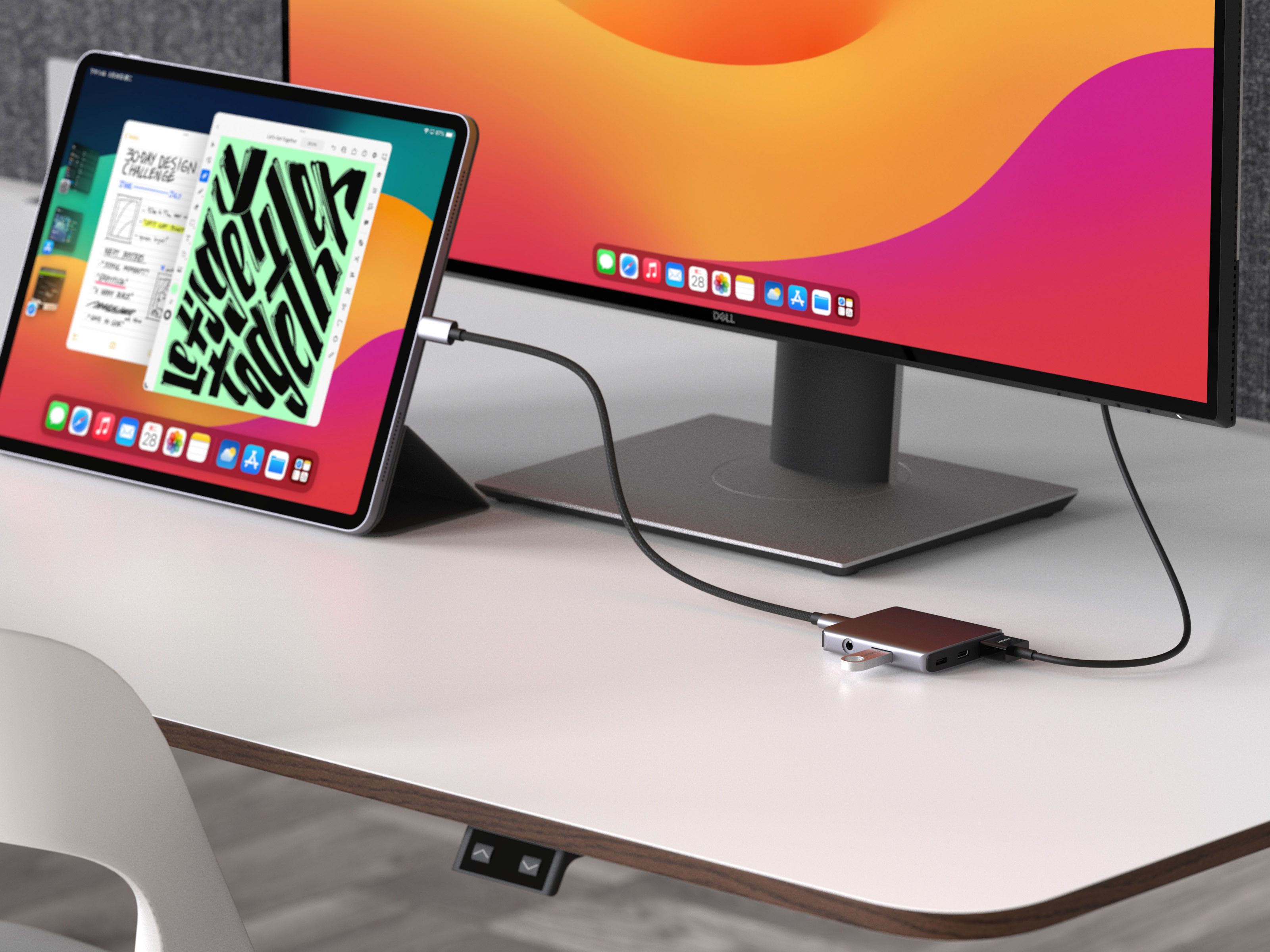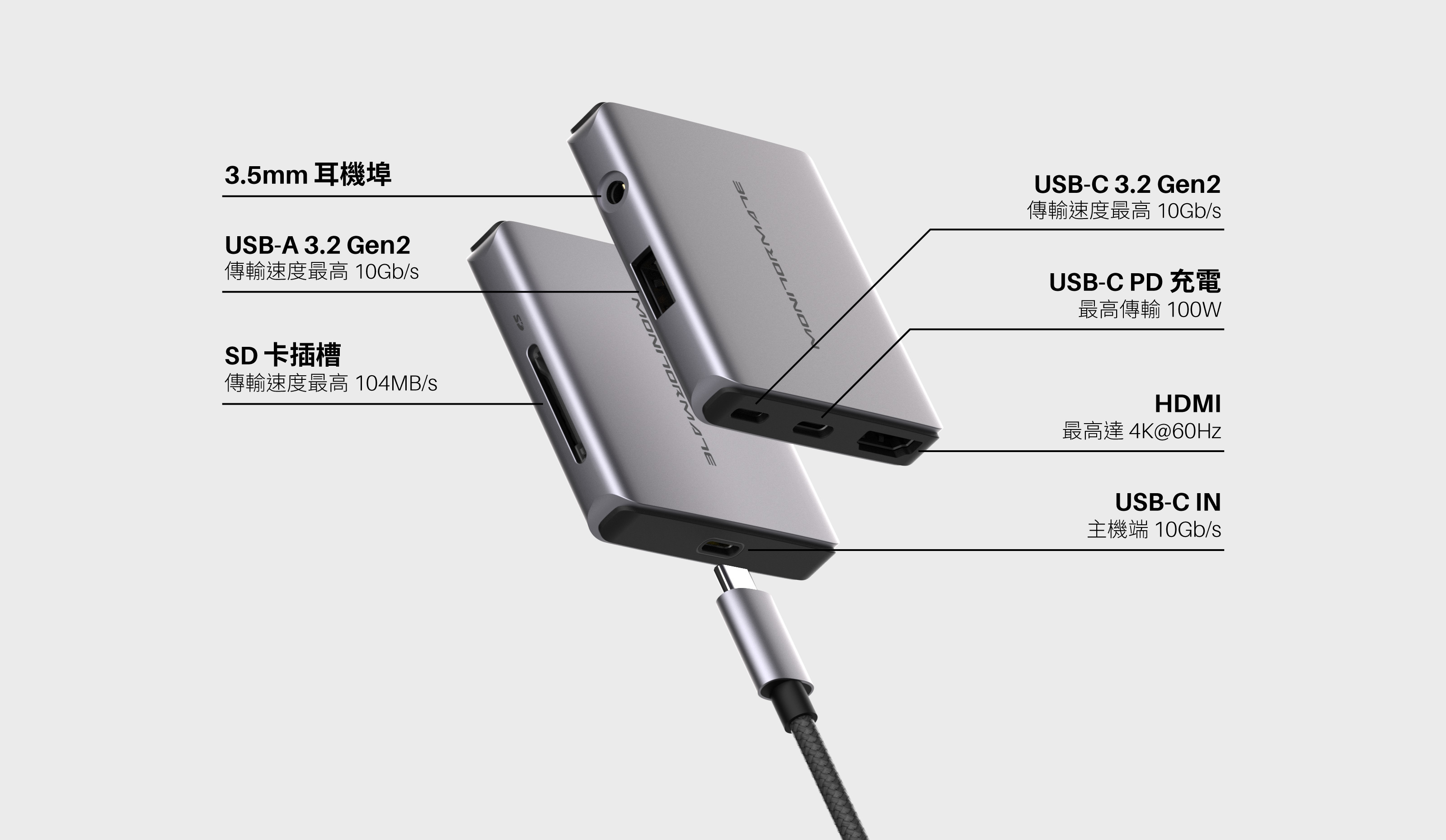 支援 PD3.0 充電協定,最高可傳輸 100W 電力。這意味著,即使像 iPad 這樣只有一個 USB-C 的設備,您也可以在外接裝置的同時,幫您的 iPad充電,讓您的行動裝置始終保持滿電狀態。