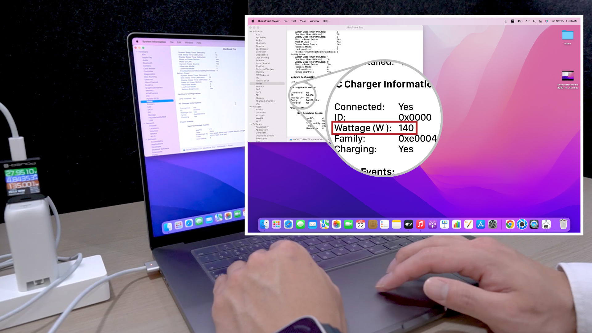 PD3.1 140W 充電功率測試設備:MacBook Pro (16 吋, M1 Pro, 2021) / CP3 140W / MagSafe 3 連接線 / POWER-Z PD 測試儀