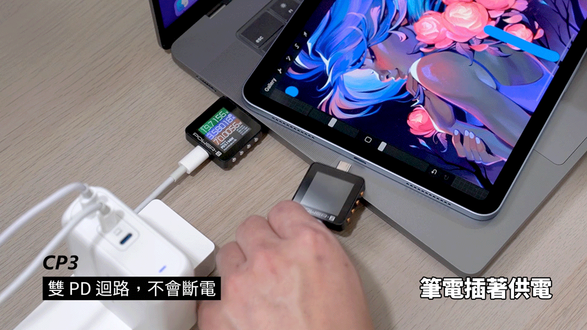 雙 PD 迴路測試設備:MacBook Pro (16 吋, M1 Pro, 2021) / iPad Air / CP3 140W / POWER-Z PD 測試儀