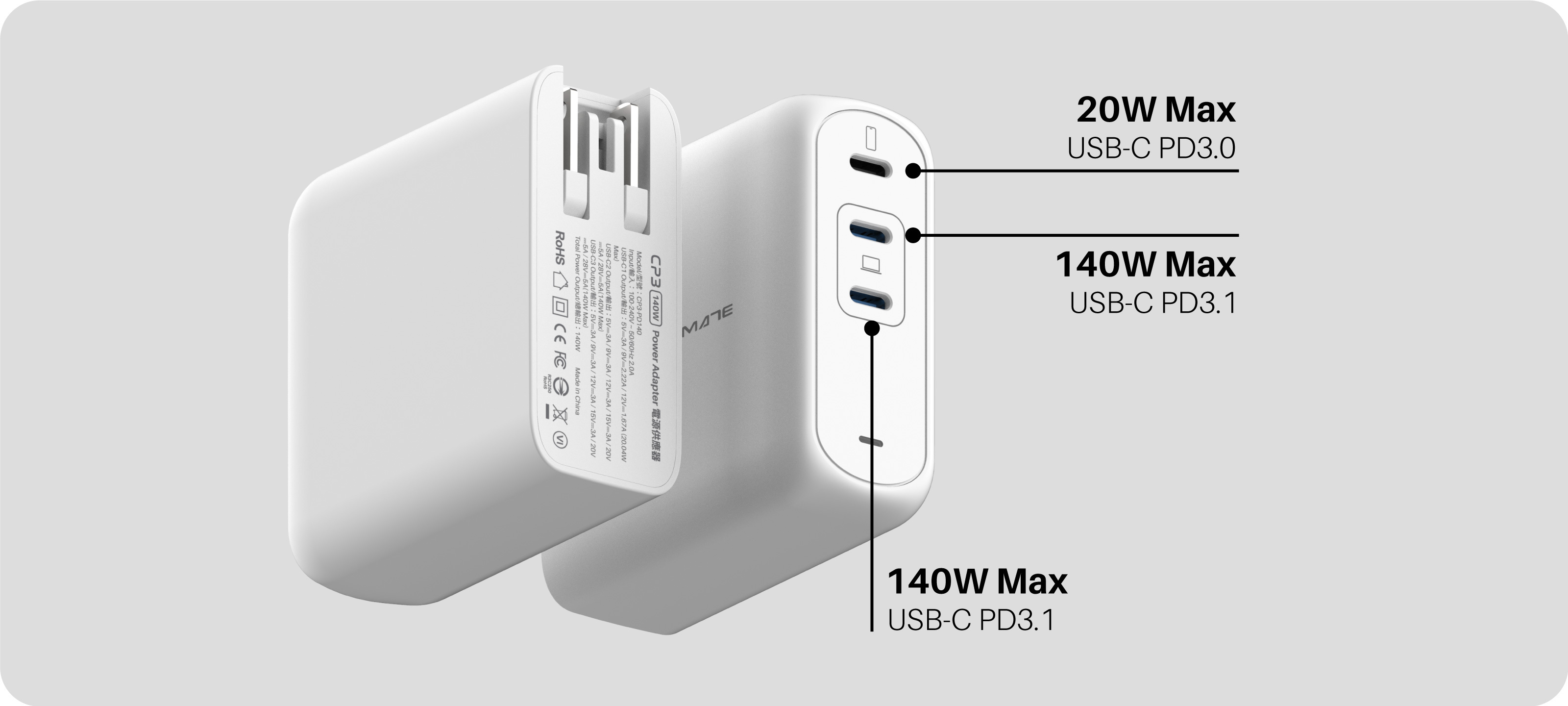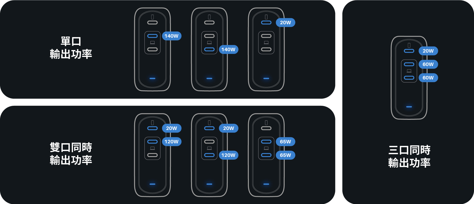 選用最新 Injoinic PI 協議晶片,輸出提升至 140W 的超高功率,更厲害的是一次給你兩組* 140W 充電 Port 口。