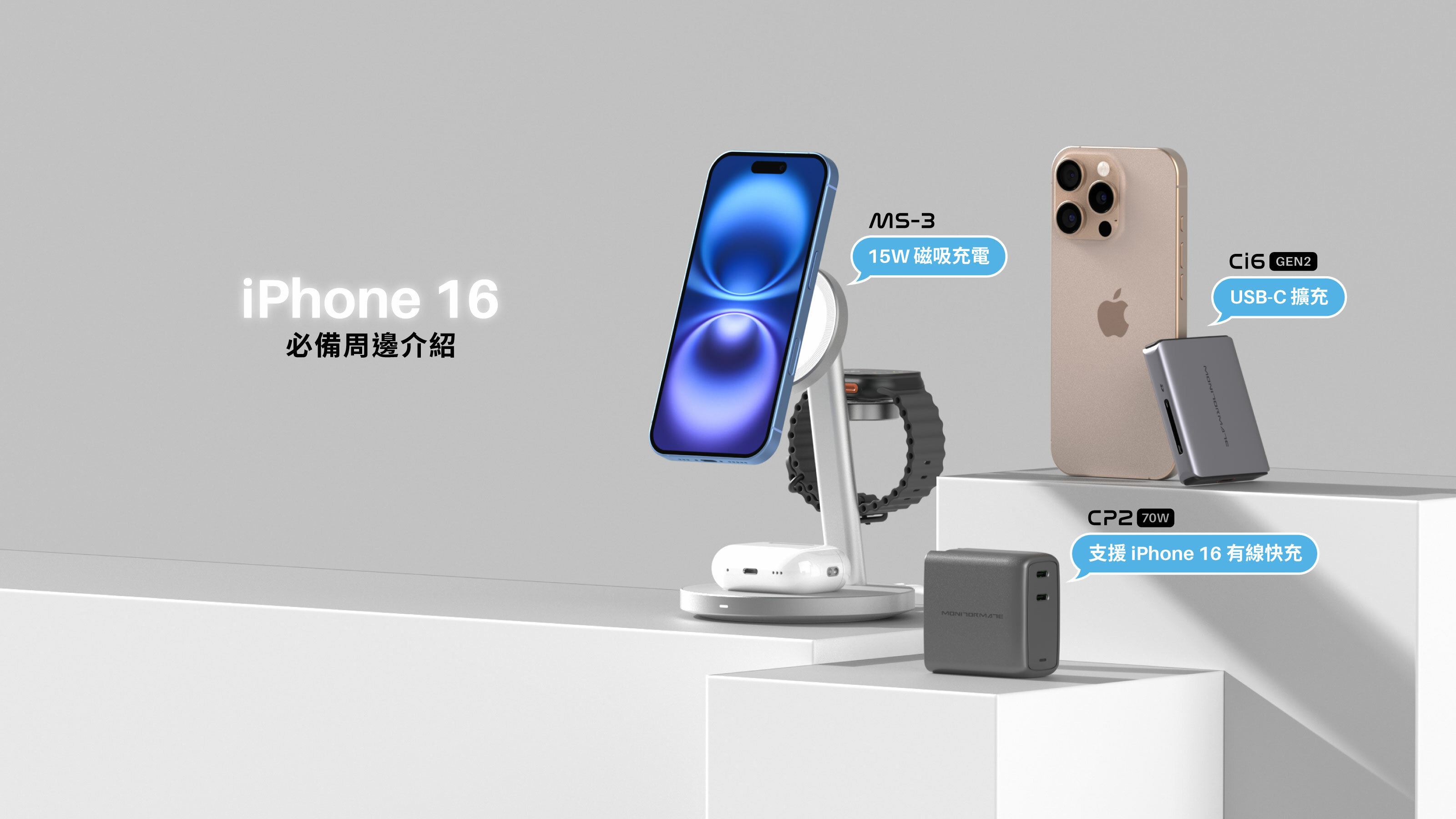 不過,25W MagSafe 的功能只限 iPhone 16 系列並需另購今年最新款的 MagSafe 充電盤才可以,而且一次只能連接一台手機充電,沒辦法同時幫您的 AirPods 跟 Apple Watch 充電。有鑒於上述缺點,我們強烈推薦全新的 MS-3 Qi2 三合一磁吸充電支架。
