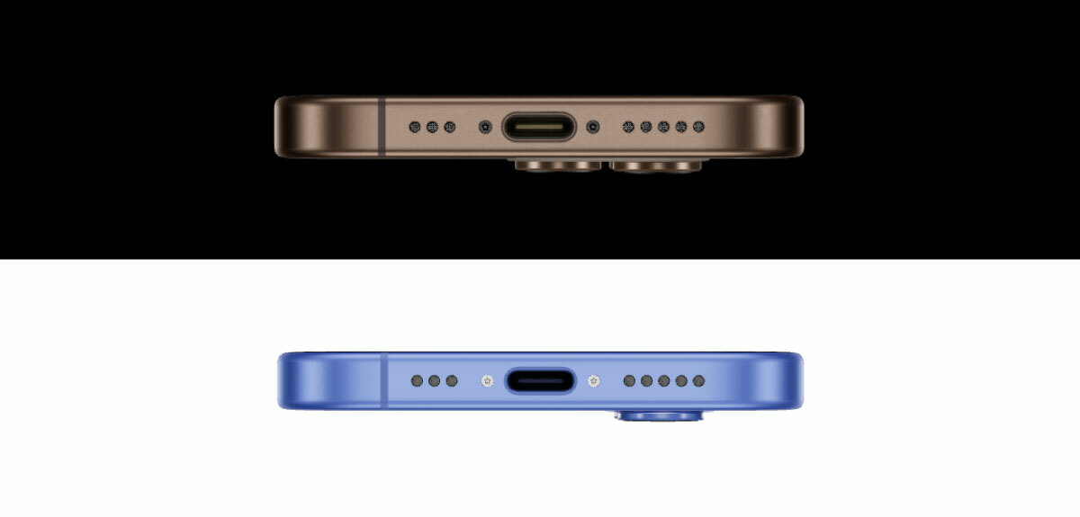 ▲ iPhone 16 Pro(圖上)與 iPhone 16(圖下)都是 USB-C 介面