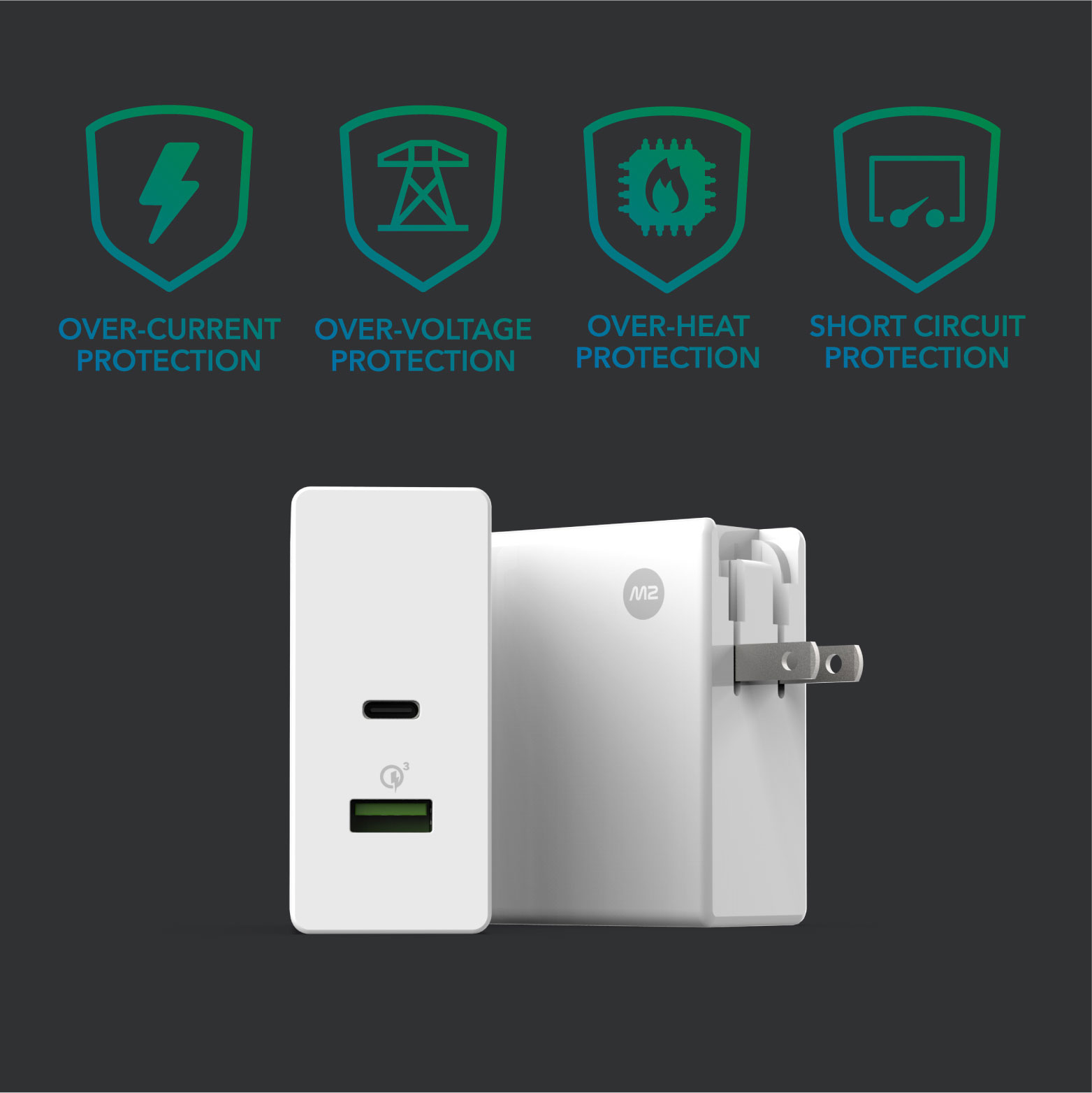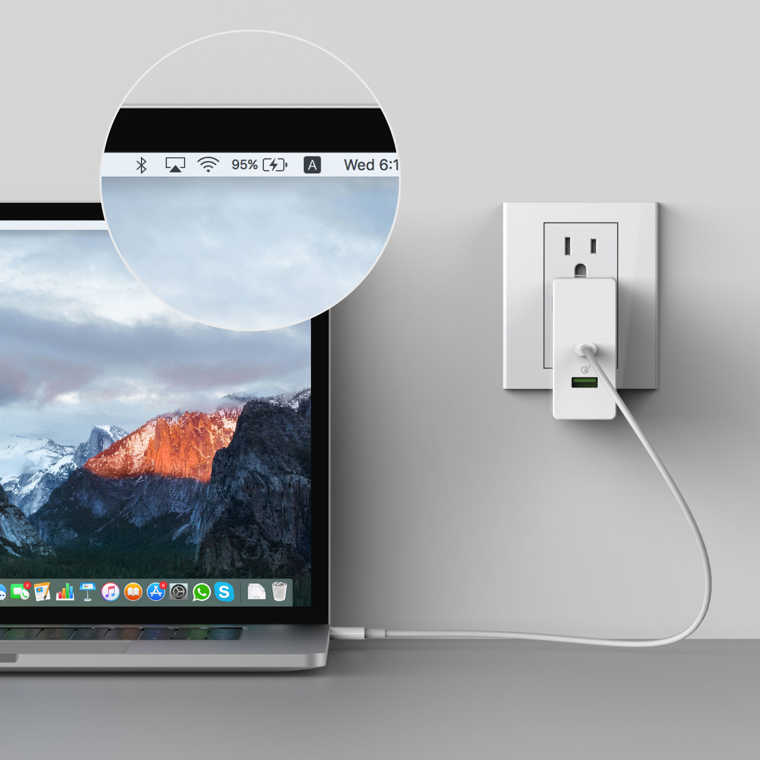 USB-C port with up to 60W Power Delivery efficiently charges compatible devices faster, more than enough to charge 2017 MacBook/Pro, laptops, tablets, cell phones, and other USB-powered devices.