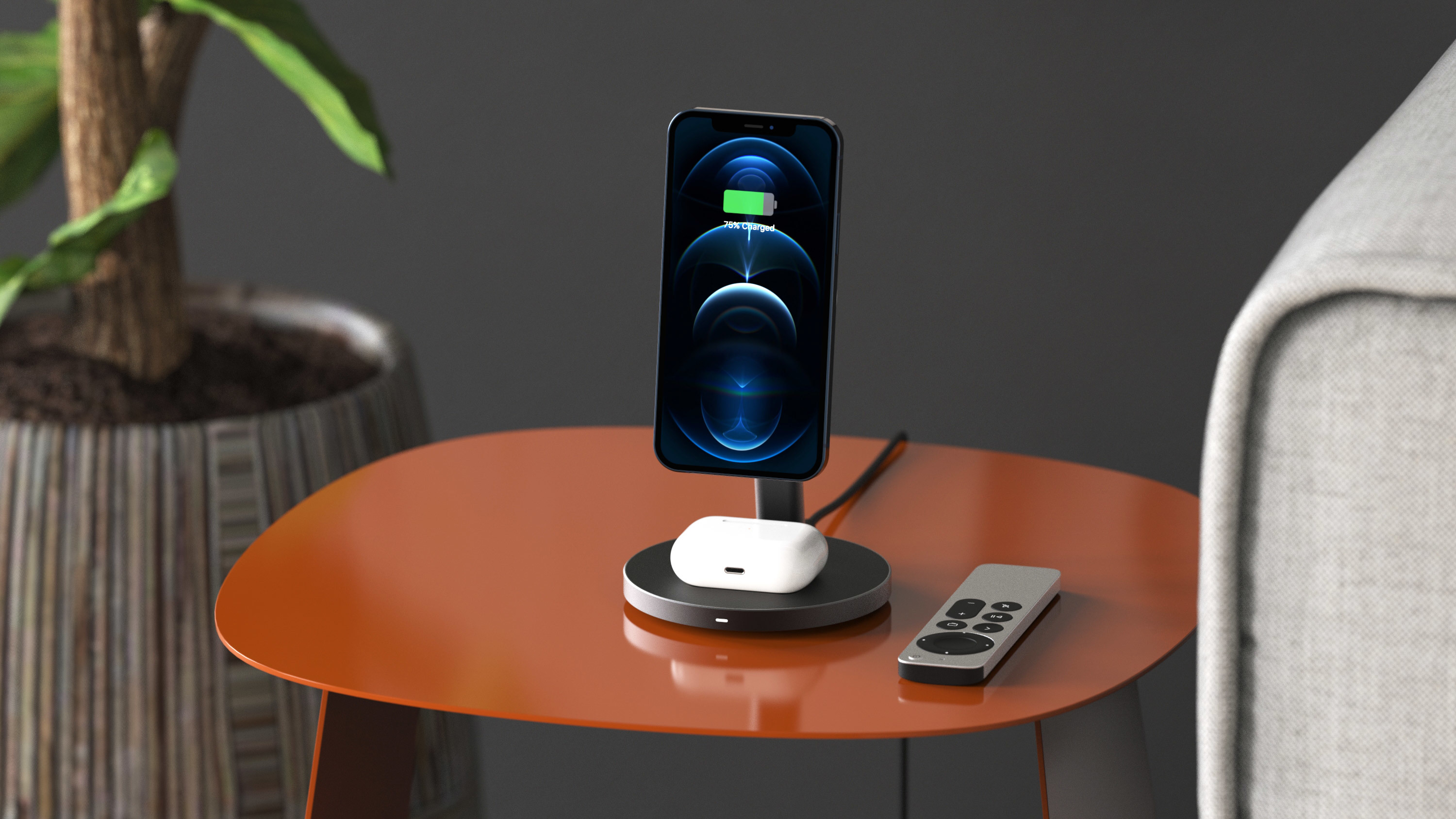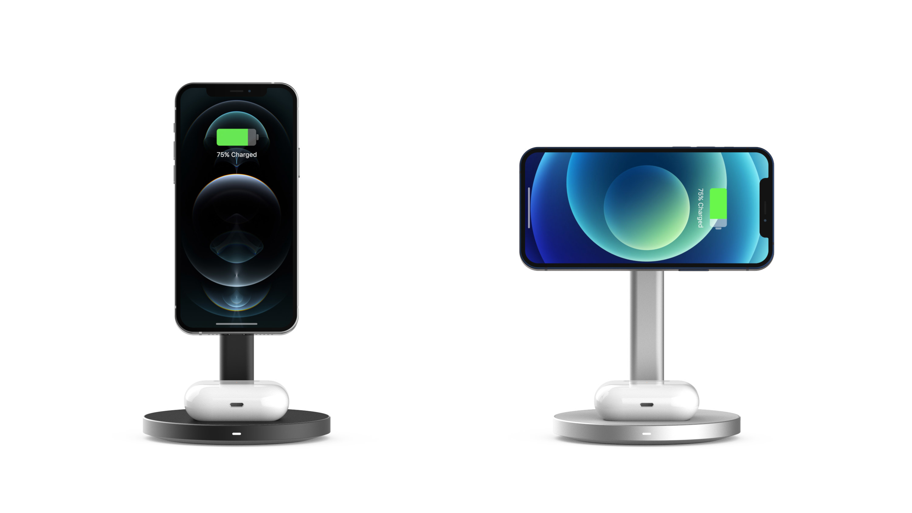 上下都可充,一次可充兩支手機,或是同時幫你的 iPhone12/13/14/15* 系列與 AirPods** 充電。