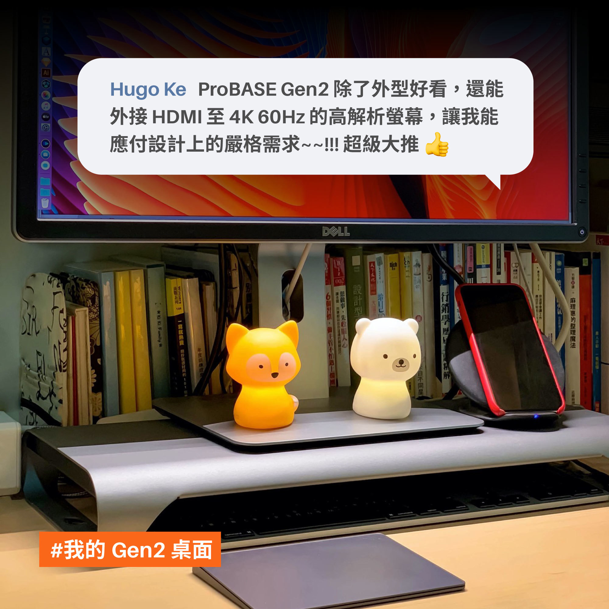 因為我長時間呆都待在電腦前,透過 ProBASE Gen2 讓我放上筆電只要接上 USB-C 3.1 連接線,一次可插多張記憶卡、行動硬碟、滑鼠等節省許多 USB 線的繁雜交錯。實用又質感的物品,我大力推薦。
