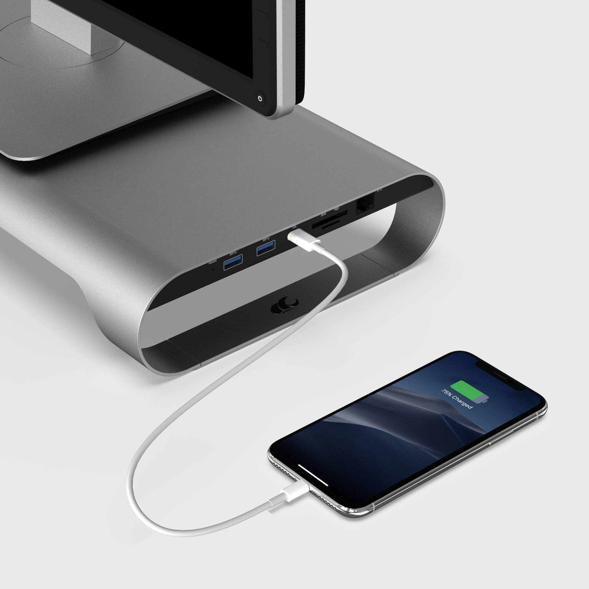 配備兩組 USB3.0 接口,滿足你的擴充需求,不論是要幫手機充電或是傳輸資料都能輕鬆地在辦公桌前完成,使用 USB 不用再低頭彎腰找電腦主機。