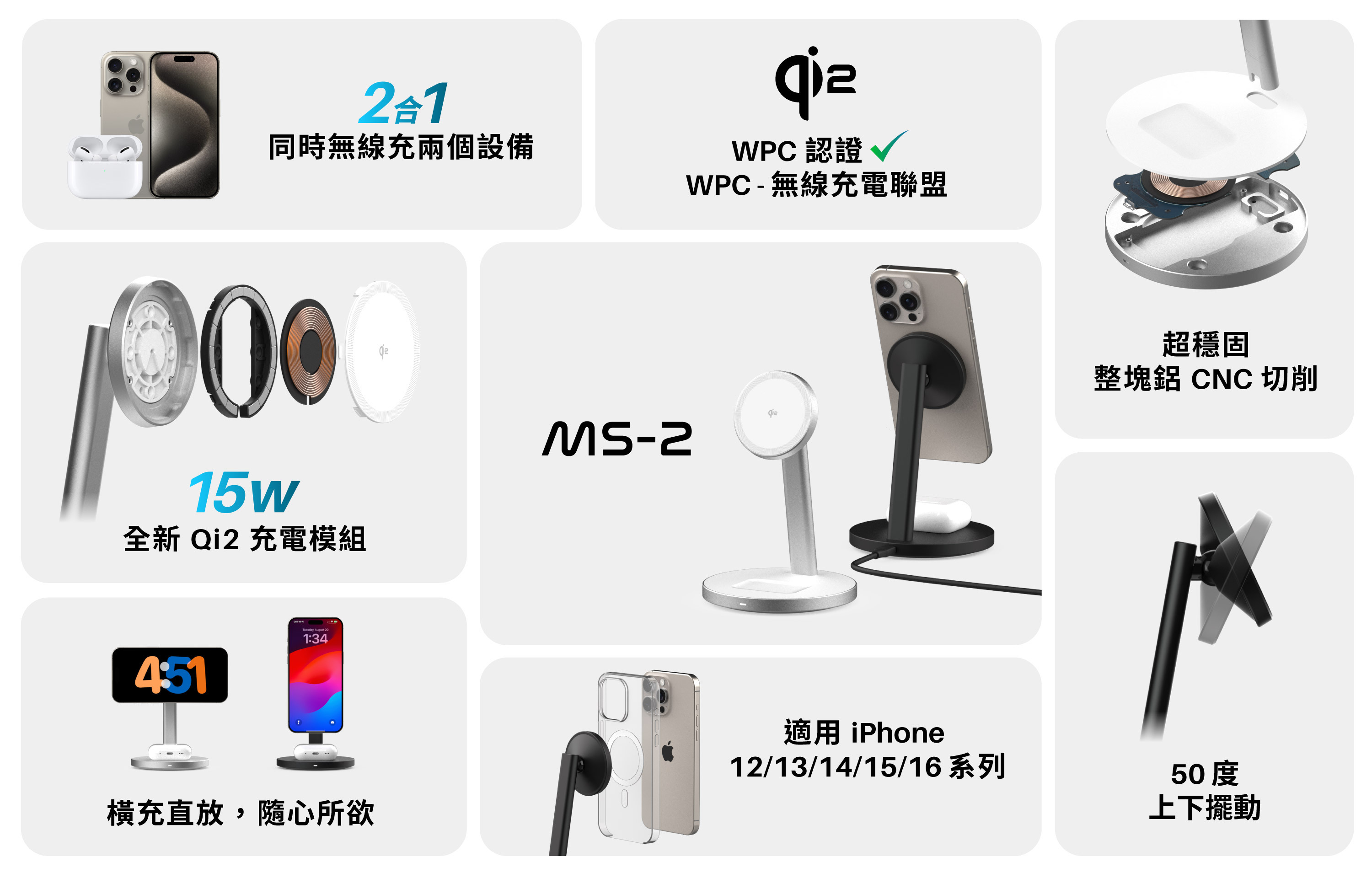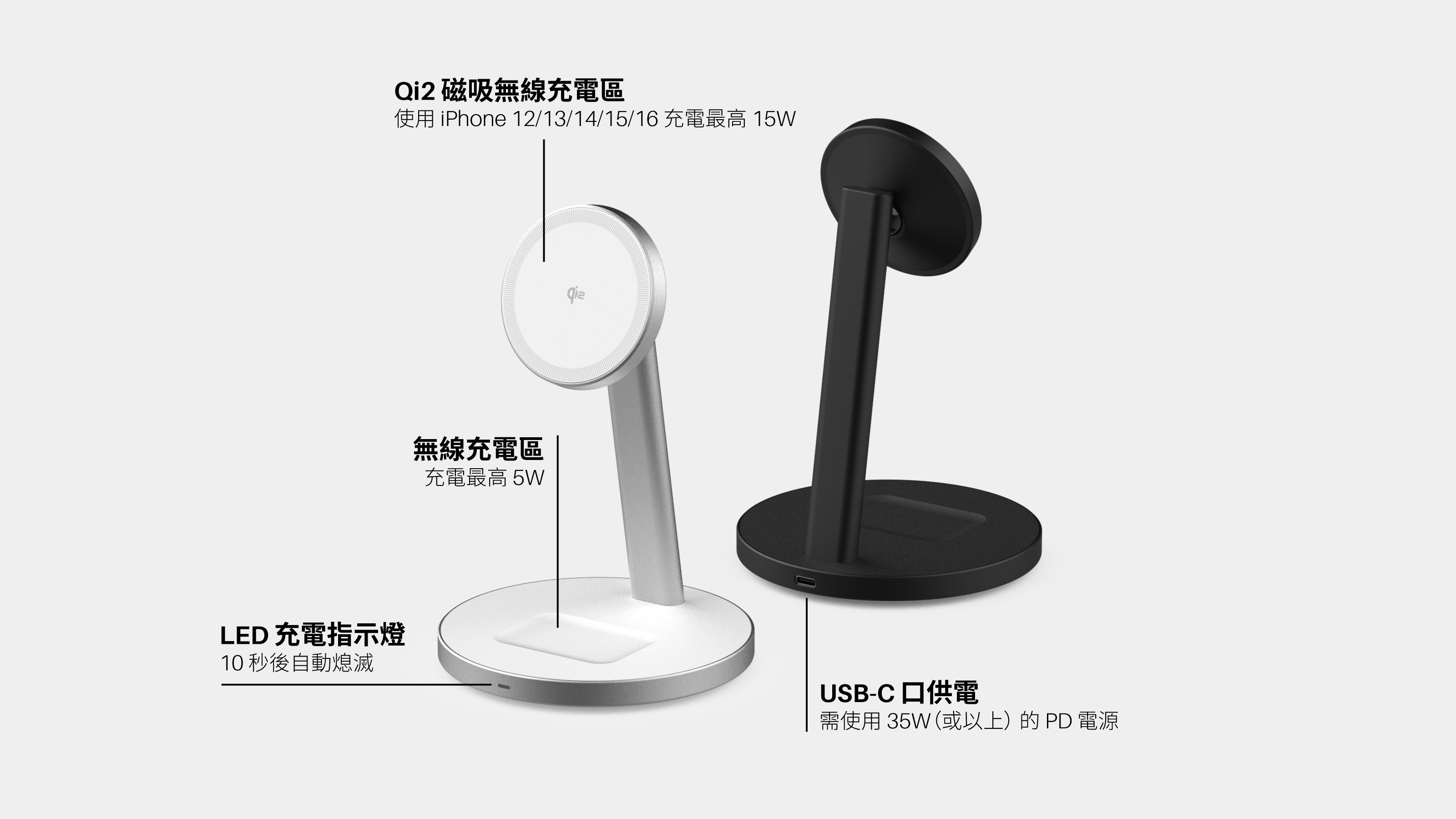 多達 16 顆強力磁鐵排列組成,精準磁力定位幫助提升無線充電效率,完美相容於 MagSafe。支援 iPhone 磁吸無線充電,手機直放,平擺都好用。放上就充,釋放雙手,工作效率再加倍!