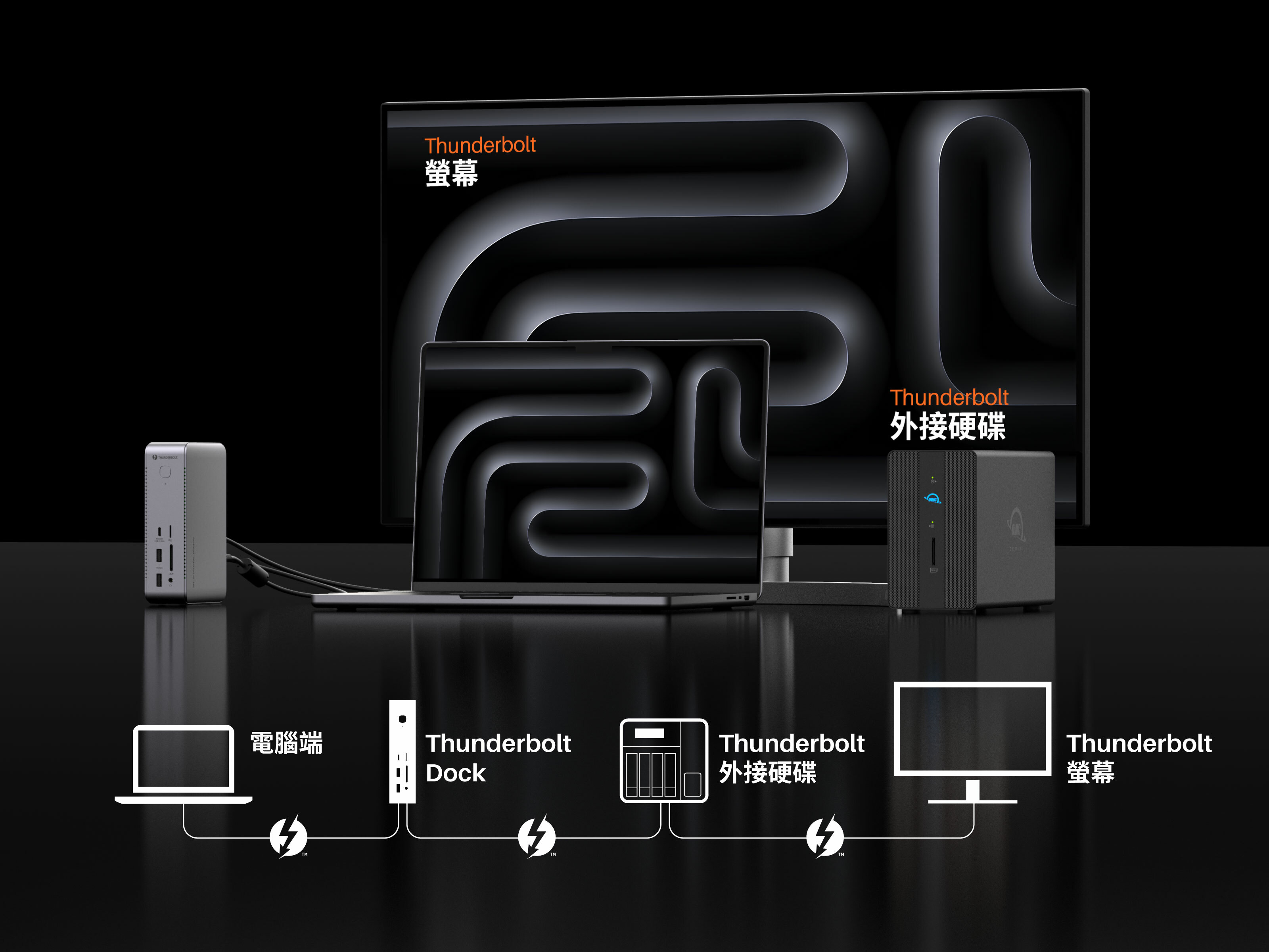 Thunderbolt 具有獨特而強大的 Daisy Chain 功能,以出色的技術重新定義連接。能串聯多個 Thunderbolt 裝置,無縫擴充您的工作需求,無論是在大規模檔案儲存的 NAS,獨立外接的顯示卡,還是外接螢幕顯示。Daisy Chain 技術都能夠輕鬆應對,提供了絕佳的外接彈性和擴展性,並確保裝置間的傳輸達到最高效。