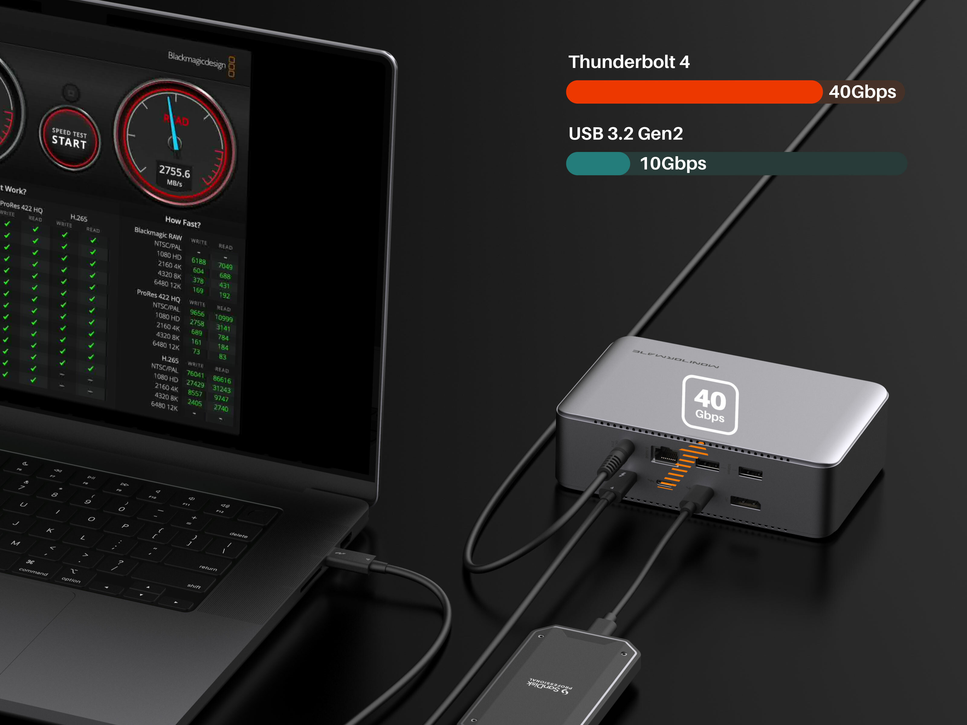 Thunderbolt 4 傳輸速度測試設備:MacBook Pro (16 吋, M3 Max, 2023) / TD1 Dock / SanDisk PRO-G40