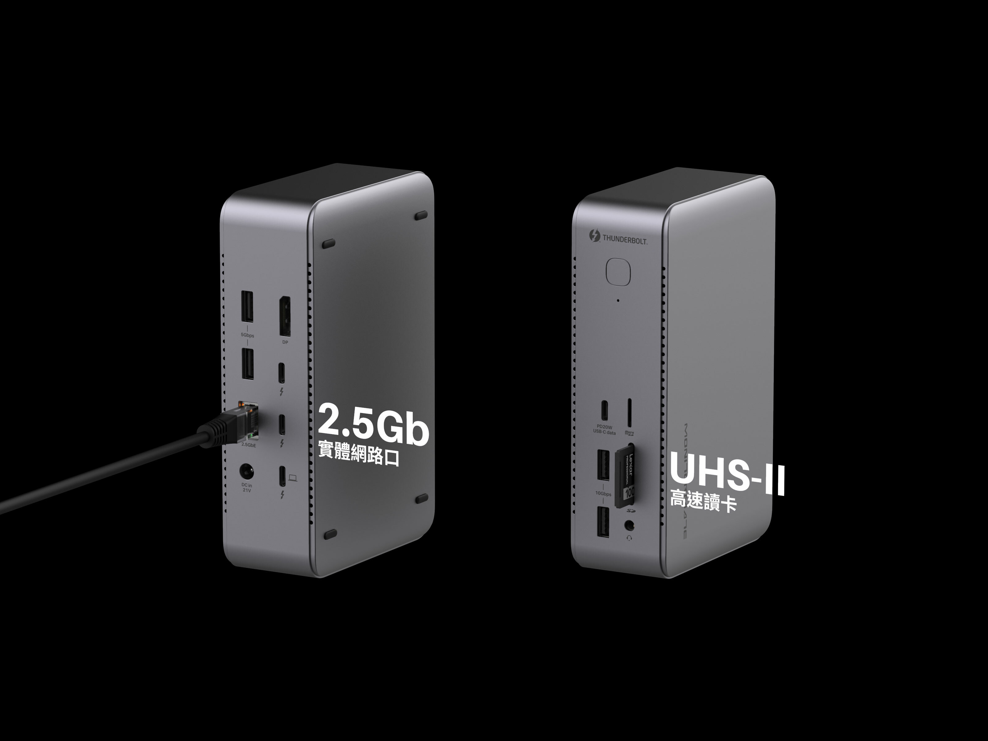 並提供 UHS-II 規格的 SD 與 Micro SD 卡槽,一般 USB3.2 Gen2 跟 Gen1 的資料接口也一應俱全,讓您輕鬆傳輸文件和備份照片、影片。 此外,還具備 DisplayPort 1.4 規格的 DP 接口,同樣支援最高達到 8K@30 的顯示器。