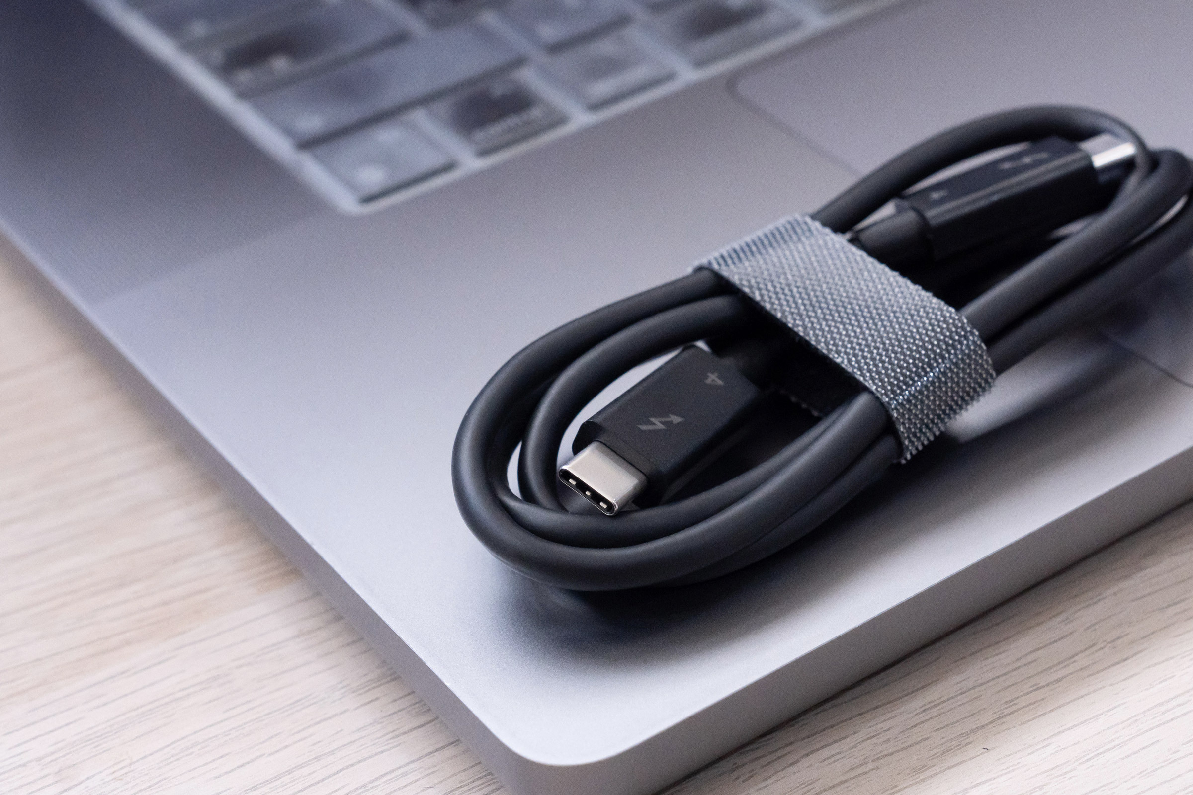 隨機身也附送了一條 40Gbps 滿速的雷電 4 線,80 公分的傳輸線讓你在配置桌面位置時有著彈性。