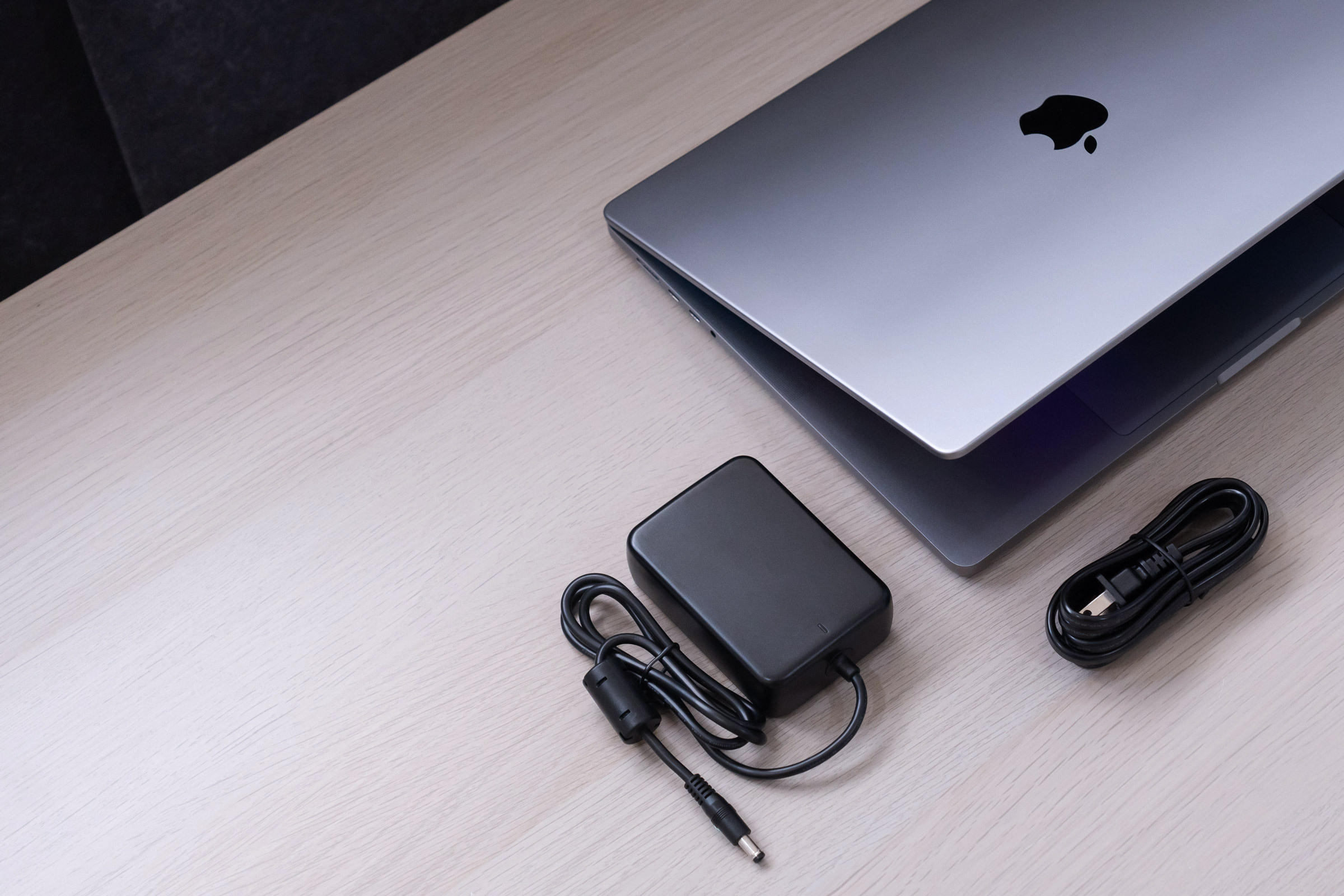Dock 因為供電需求都會搭配變壓器使用,可是市面一般變壓器都像磚頭一樣。但 TD1 解決了這個困擾,因採用 GaN 技術,TD1 變壓器在同樣供應160W 電量的狀況下,體積大幅縮小,使用上更加輕巧而沒有負擔。不單單滿足 TD1 Thunderbolt 裝置的電力需求,也可為 MacBook 提供 92W 的充電。